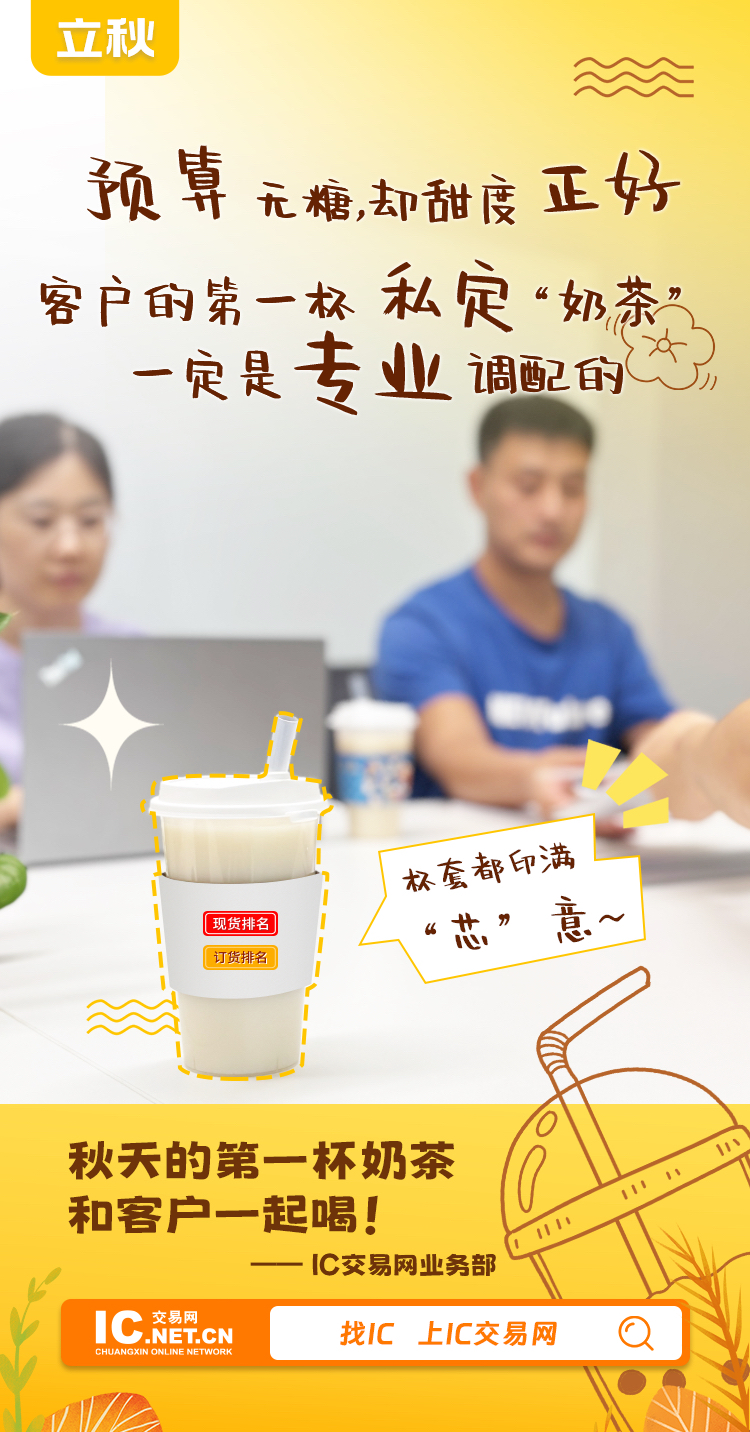 作为电子元器件行业26年的“老字号”,始终秉持焊锡般牢固的服务初心,研制出受大众喜爱的“热卖推荐”产品,服务于每一位客户;针对客户的特殊需求,我们也能定制出"三分糖少冰"或“七分糖温热”的个性化解决方案。二十六年历程,不负客户嘱托,IC交易网一直坚守“诚信、专业、高效”的核心温度,让暖心成为常态,让安心贯穿始终。感谢您长期以来的陪伴与信任,就让我们共同捧起这杯“芯”意奶茶,在这秋意初现的时节,继续携手同行,共赴“芯”途繁盛、美景盛开。