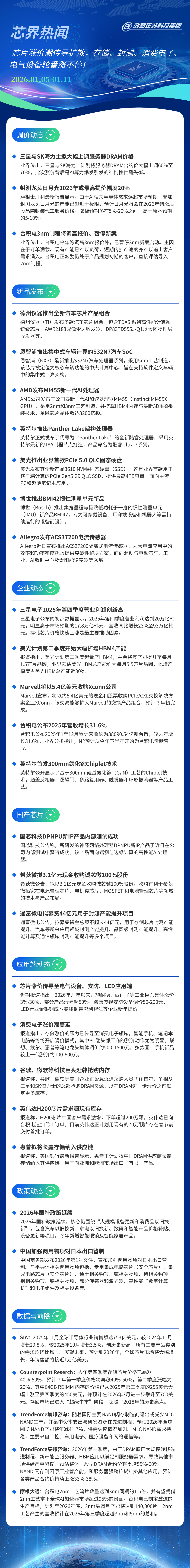 首页 > 【芯界热闻26.01.05—01.11】存储、封测、消费电子、电气设备轮番涨不停!